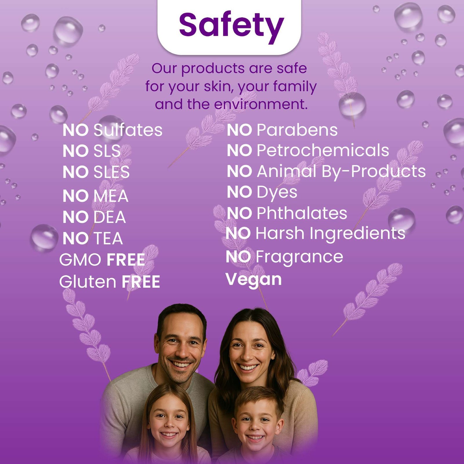 - Free from sulfates, parabens, phosphates, GMOs and more